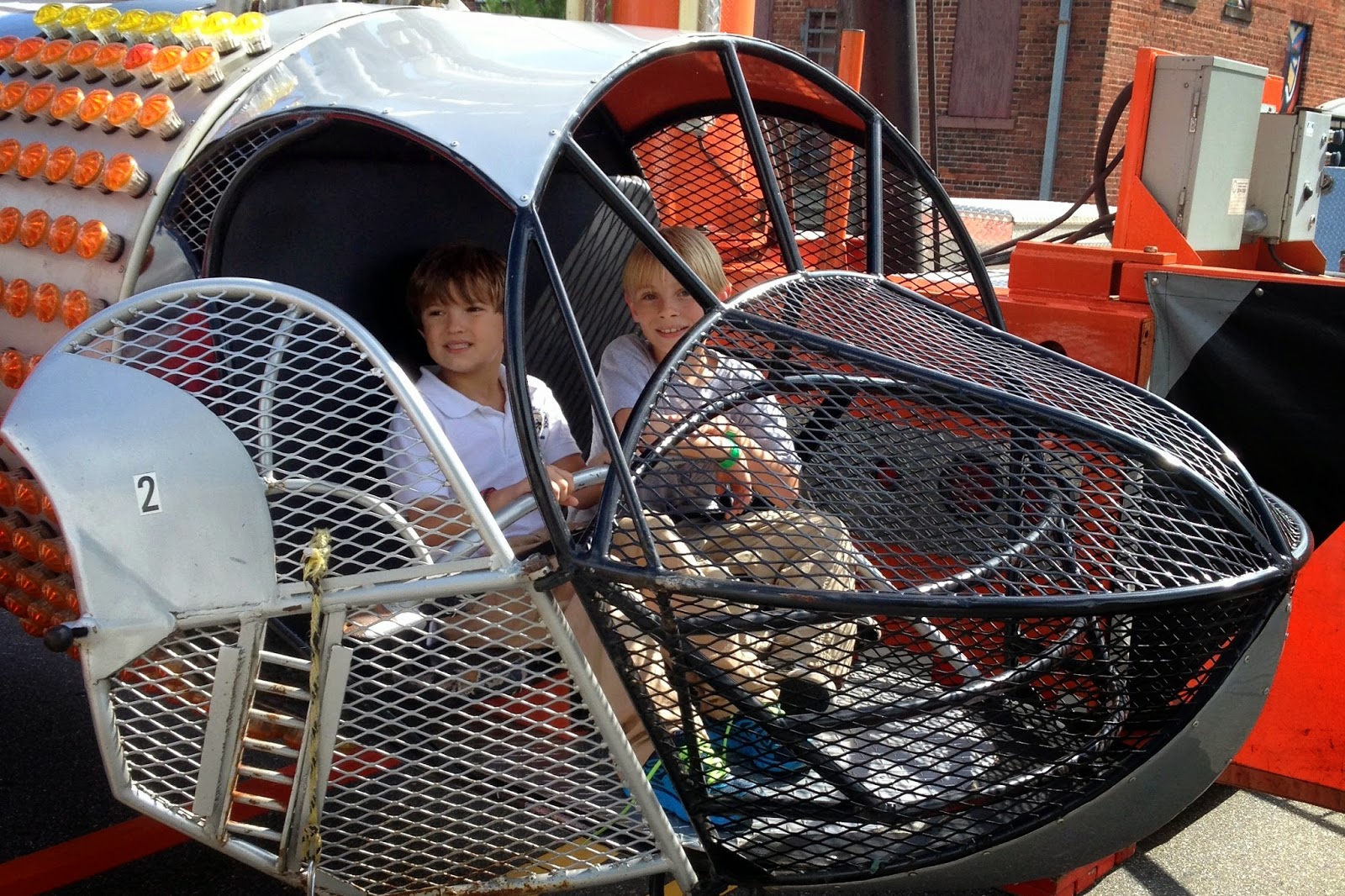 Every fall, we head over to the local festival in town the weekend after Labor Day. We usually go on Friday night and let the boys ride some rides, jump on the inflatables, and enjoy some fair treats. This year P was tall enough to ride the bullet, so he rode that several times with his buddies while I stood by and tried not to experience heart failure. We went to dinner with some friends before heading home Friday evening. The transition back to school always reminds me how much I enjoy family time on the weekends!